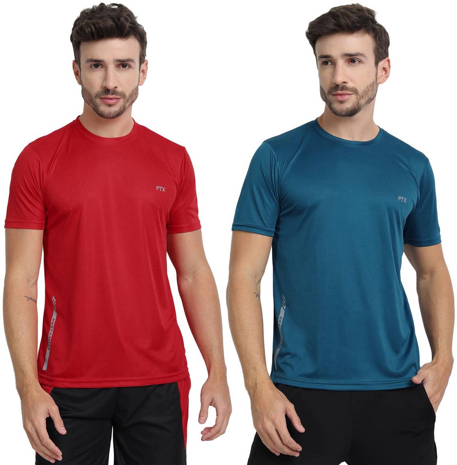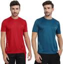 FTX Pack of 2 Men Solid Round Neck Polyester Dark Blue, Red T-Shirt