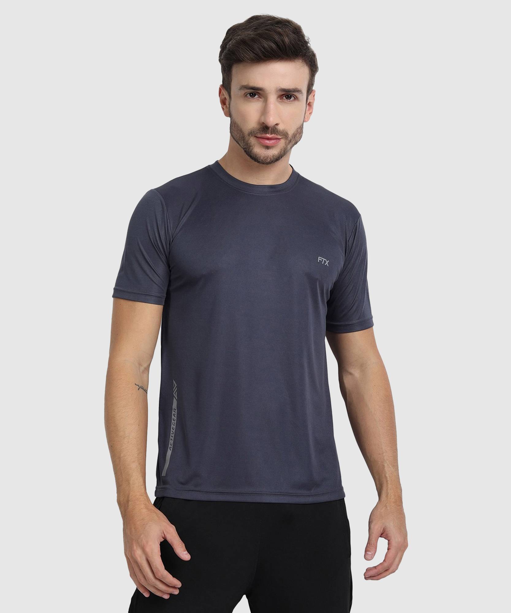 FTX Men Solid Round Neck Polyester Grey T-Shirt