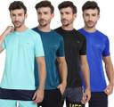 FTX Pack of 4 Men Solid Round Neck Polyester Light Blue, Blue, Black T-Shirt