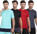 FTX Pack of 4 Men Solid Round Neck Polyester Light Blue, Red, Blue, Black T-Shirt