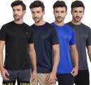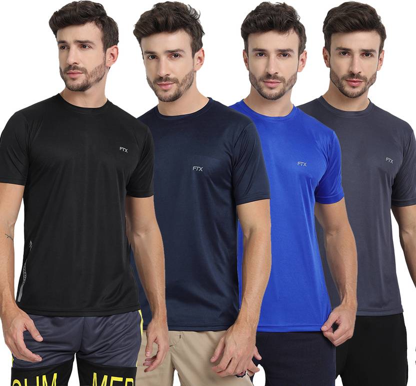 FTX Pack of 4 Men Solid Round Neck Polyester Multicolor T-Shirt