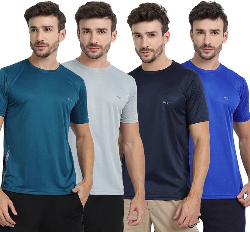 FTX Pack of 4 Men Solid Round Neck Polyester Multicolor T-Shirt