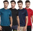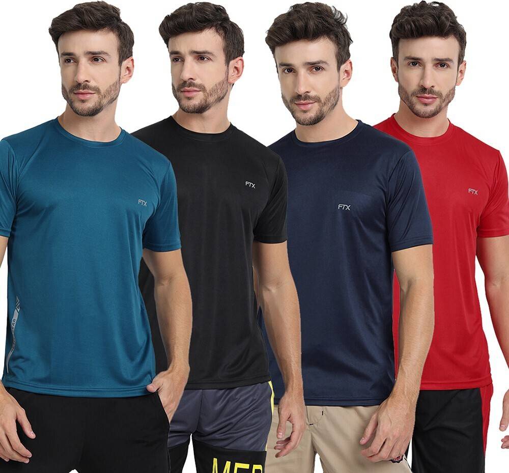 FTX Pack of 4 Men Solid Round Neck Polyester Multicolor T-Shirt
