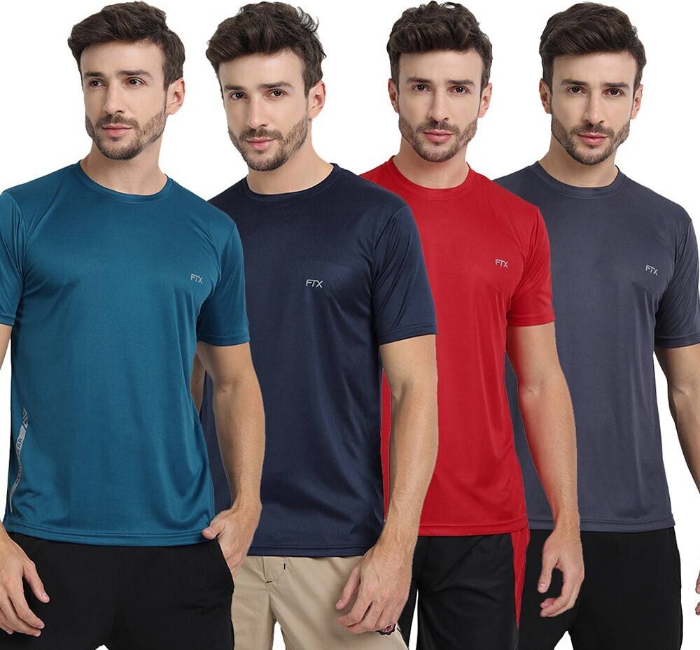 FTX Pack of 4 Men Solid Round Neck Polyester Multicolor T-Shirt