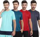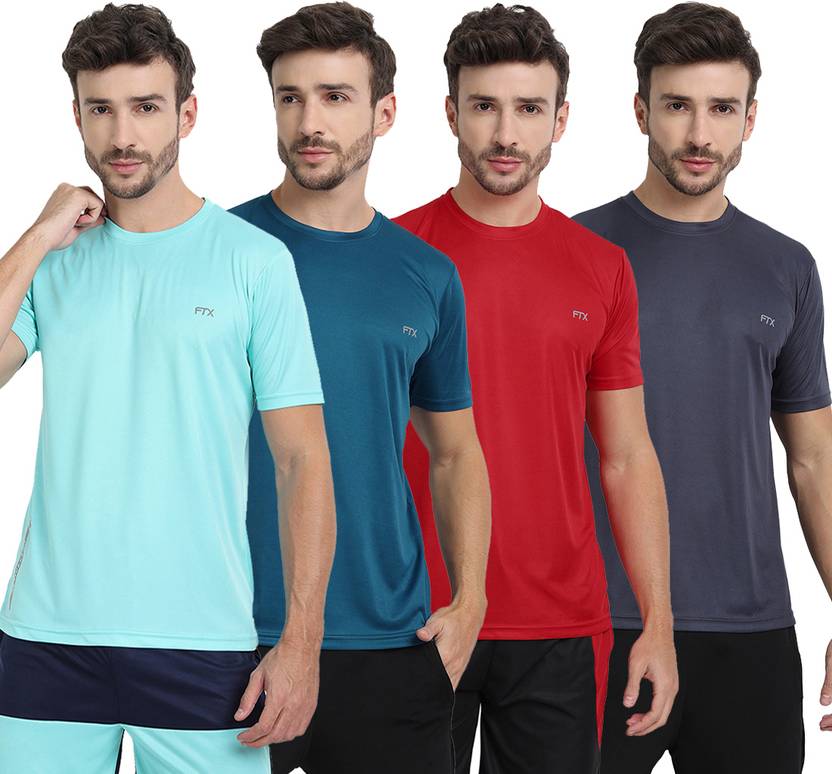 FTX Pack of 4 Men Solid Round Neck Polyester Multicolor T-Shirt