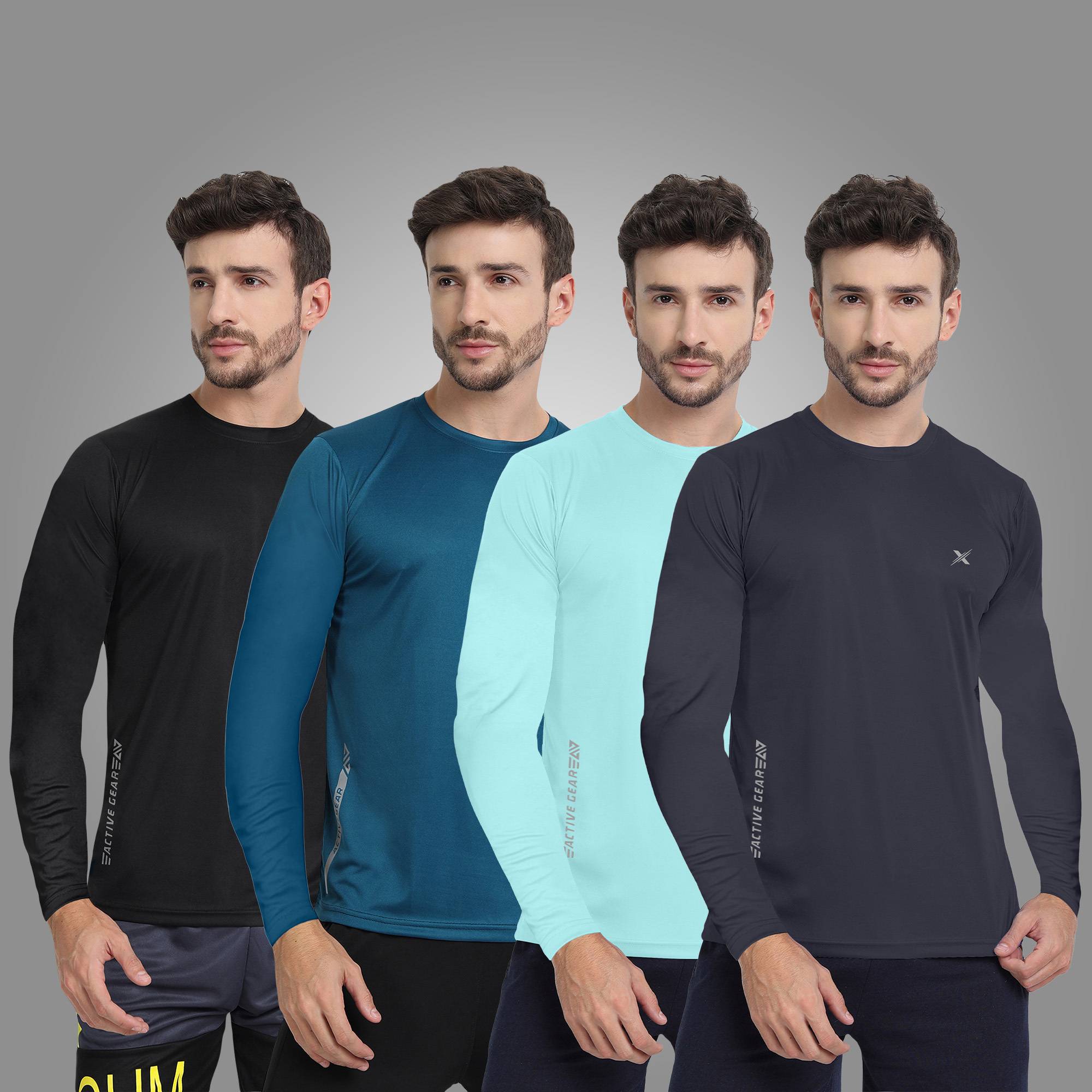 FTX Pack of 4 Men Solid Round Neck Polyester Multicolor T-Shirt
