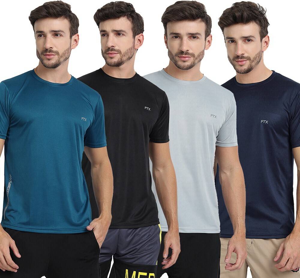 FTX Pack of 4 Men Solid Round Neck Polyester Multicolor T-Shirt