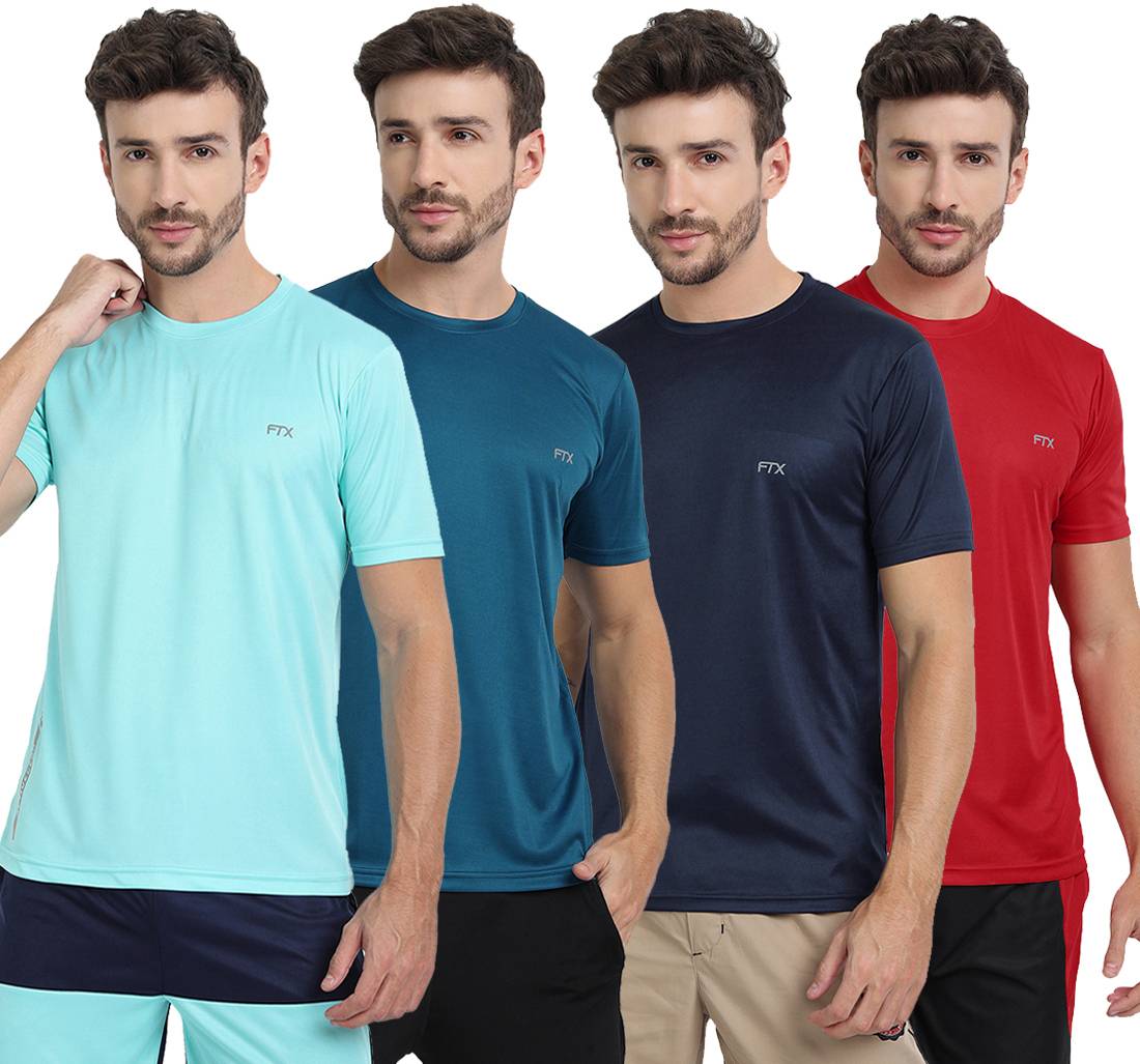 FTX Pack of 4 Men Solid Round Neck Polyester Multicolor T-Shirt