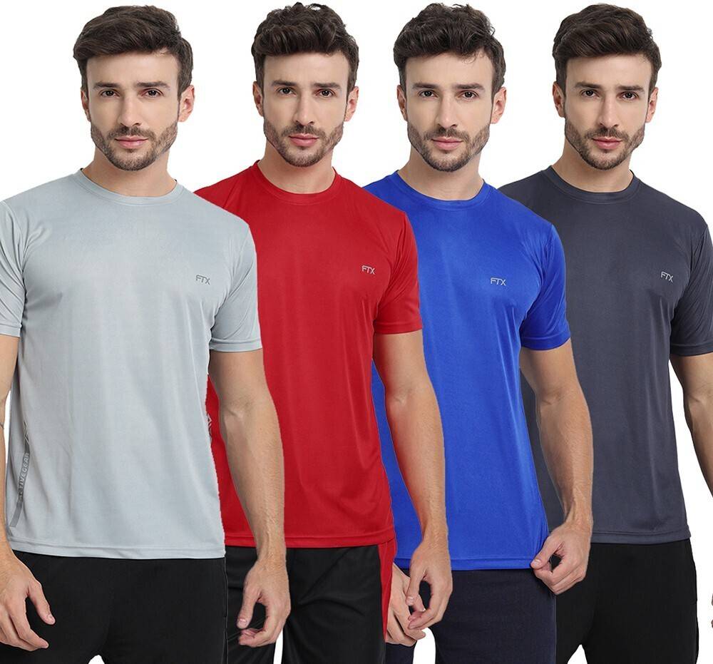FTX Pack of 4 Men Solid Round Neck Polyester Multicolor T-Shirt