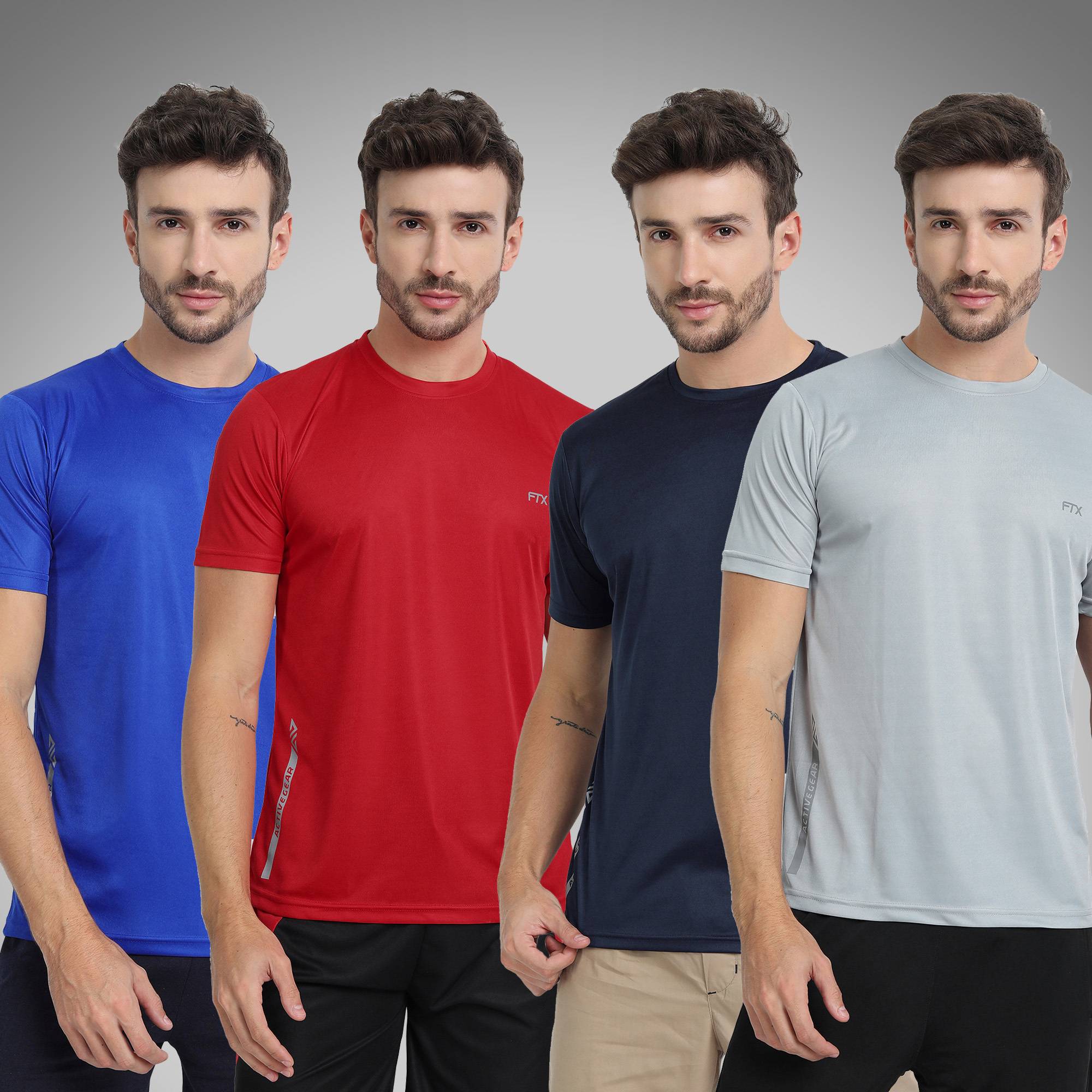 FTX Pack of 4 Men Solid Round Neck Polyester Multicolor T-Shirt