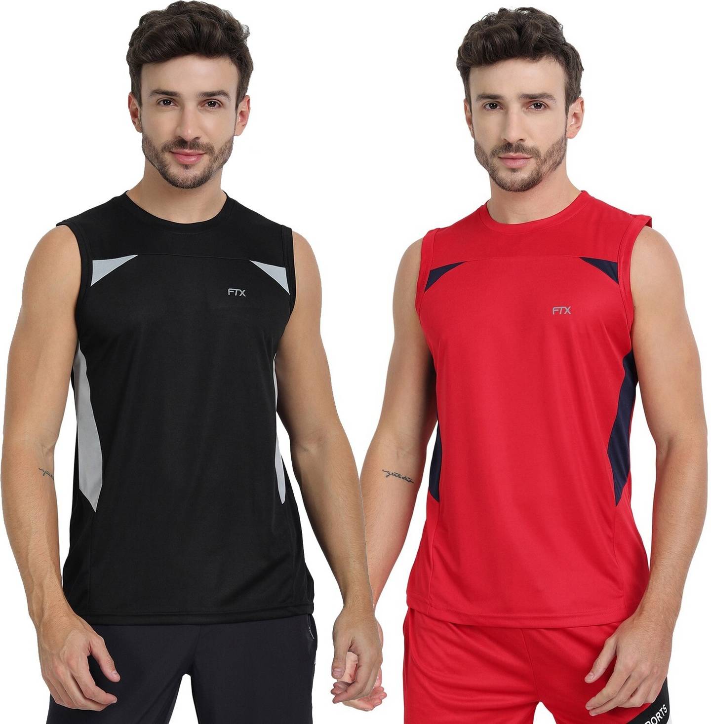 FTX Solid Men Round Neck Red, Black T-Shirt