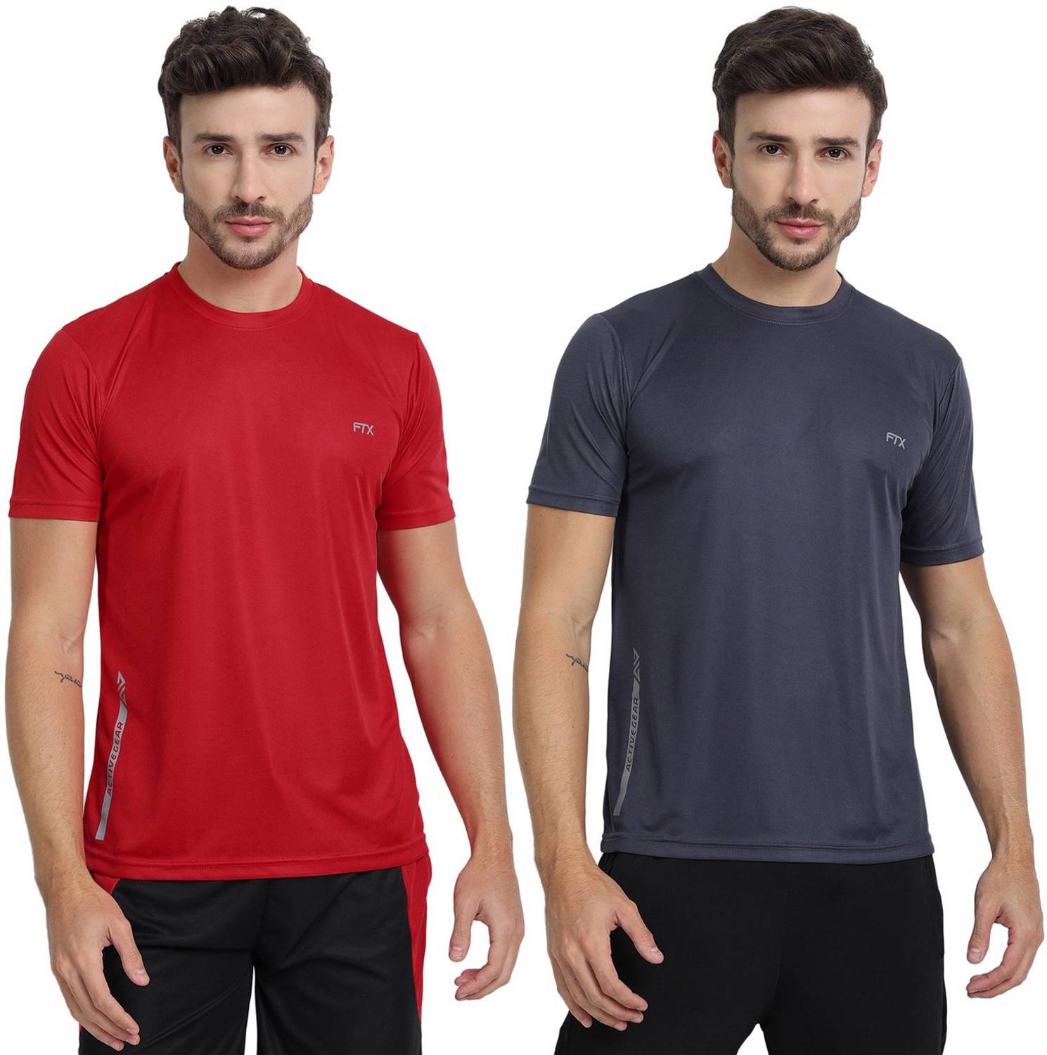 FTX Pack of 2 Men Solid Round Neck Polyester Red, Grey T-Shirt
