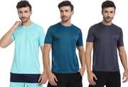 FTX Pack of 3 Men Solid Round Neck Polyester Silver, Dark Blue, Grey T-Shirt