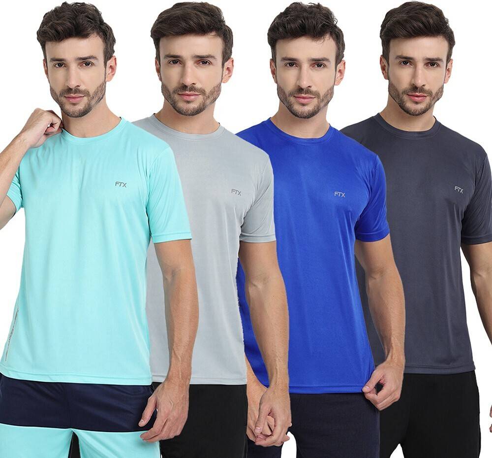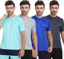 FTX Pack of 4 Men Solid Round Neck Polyester Silver, Light Blue, Blue, Grey T-Shirt