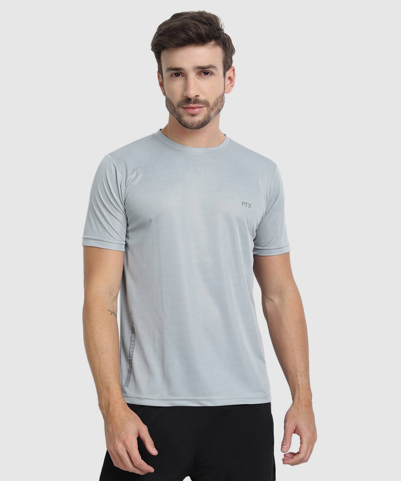 FTX Men Solid Round Neck Polyester Silver T-Shirt