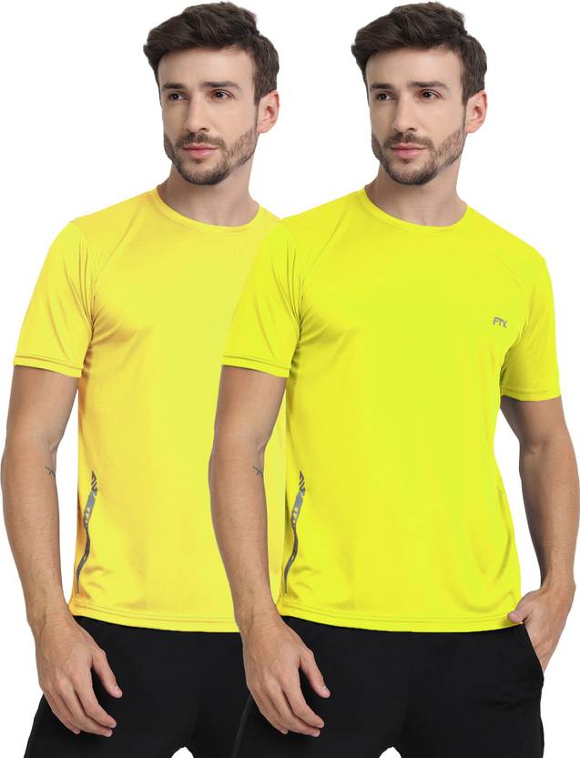 FTX Solid Men Round Neck Yellow T-Shirt