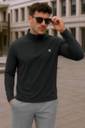 FTX Men Solid Zip Neck Polyester Black T-Shirt