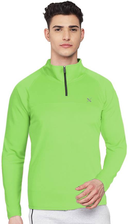 FTX Men Solid Zip Neck Polyester Green T-Shirt