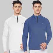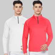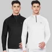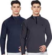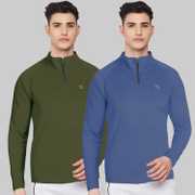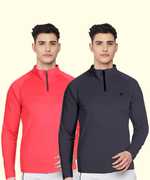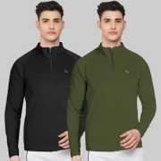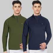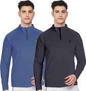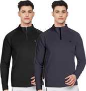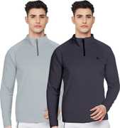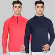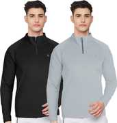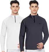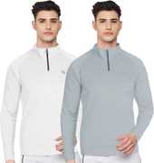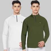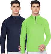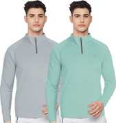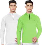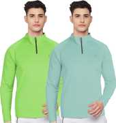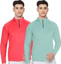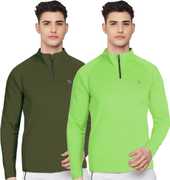 FTX Solid Men Zip Neck Red, Light Green T-Shirt
