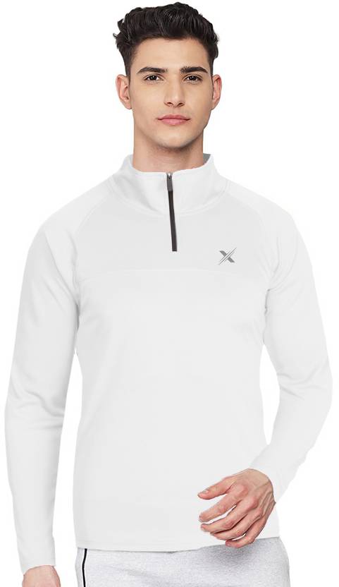 FTX Men Solid Zip Neck Polyester White T-Shirt