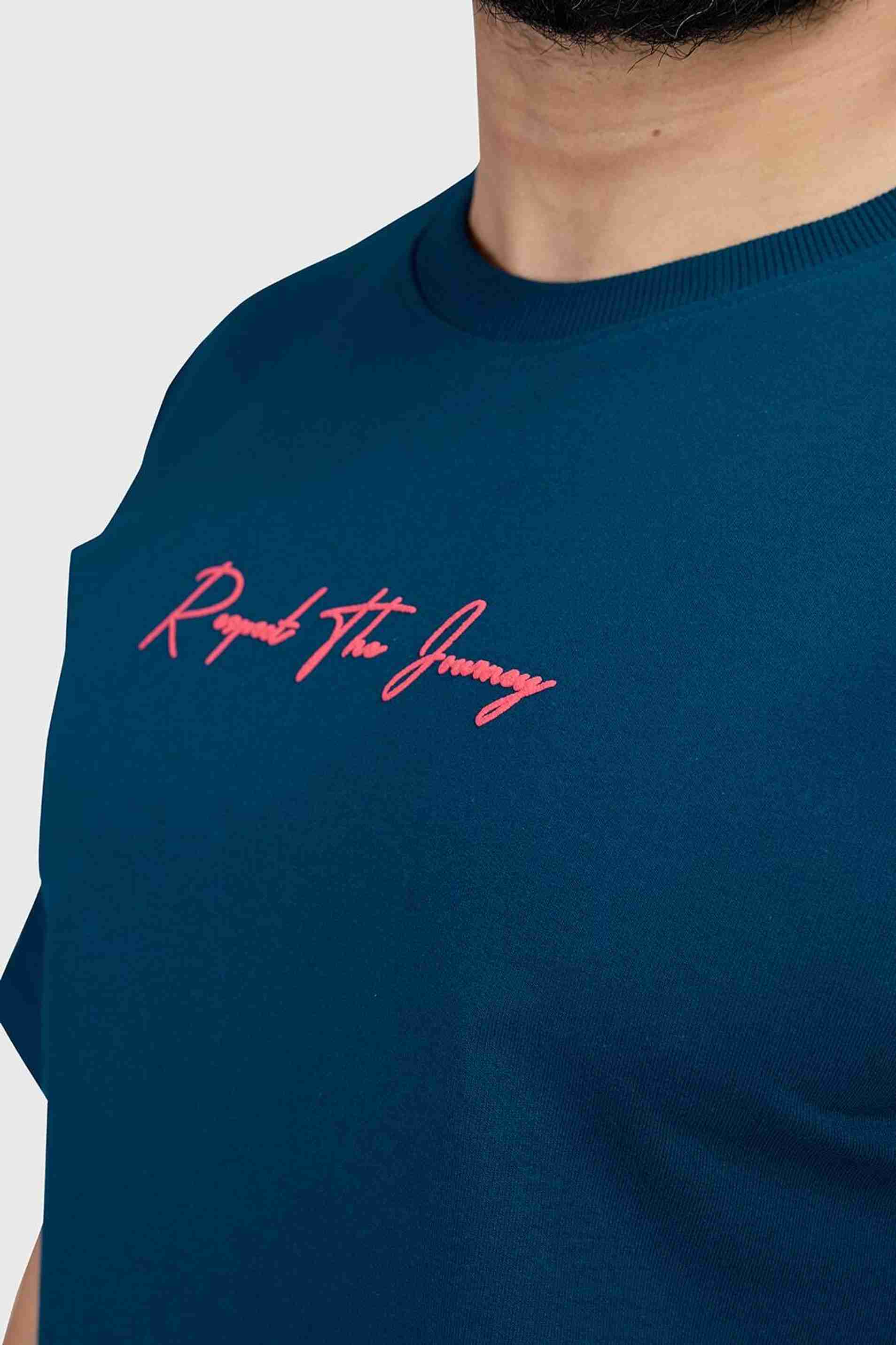 Men Solid Round Neck Pure Cotton Blue T-Shirt
