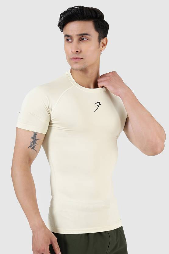 FuaarK Solid Men Round Neck Reversible Beige T-Shirt