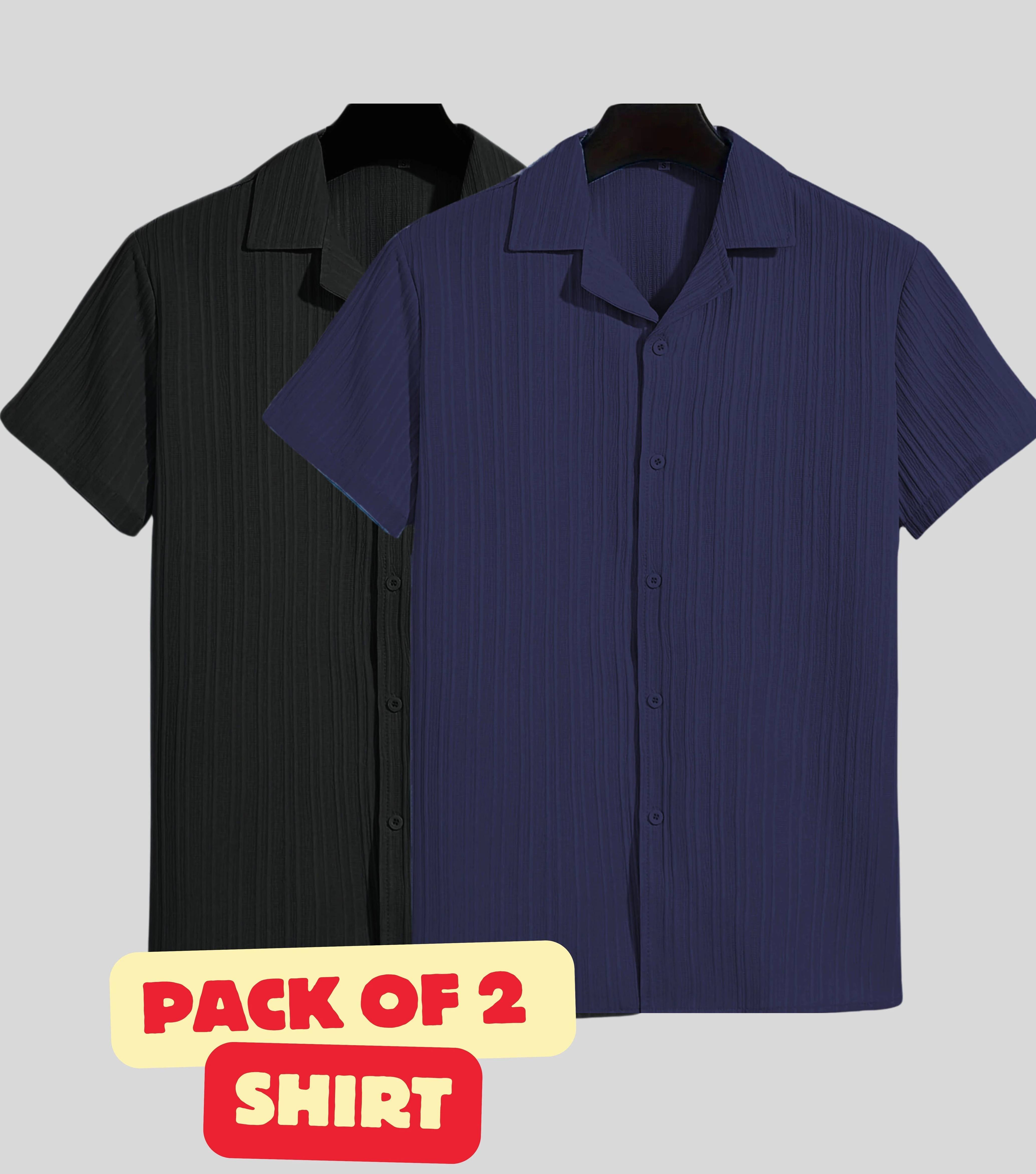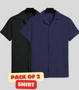 FUBACK Men Solid Casual Black, Blue Shirt (Pack of 2)