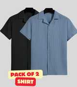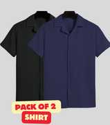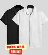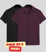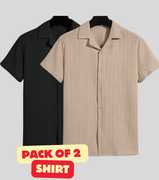 FUBACK Men Solid Casual Black, Brown Shirt (Pack of 2)