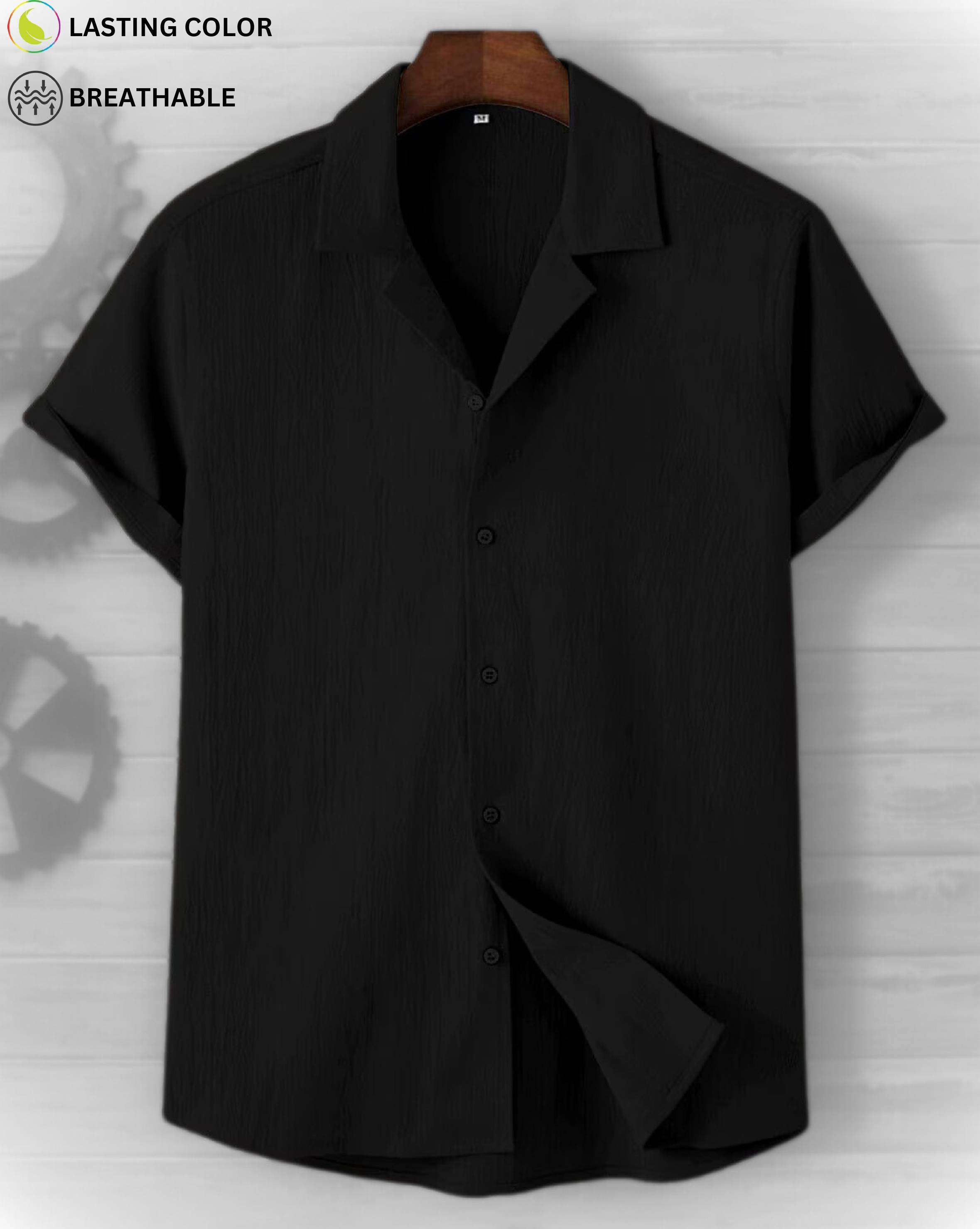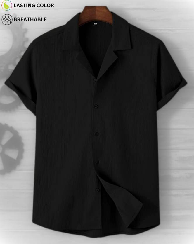 FUBACK Men Solid Casual Black Shirt