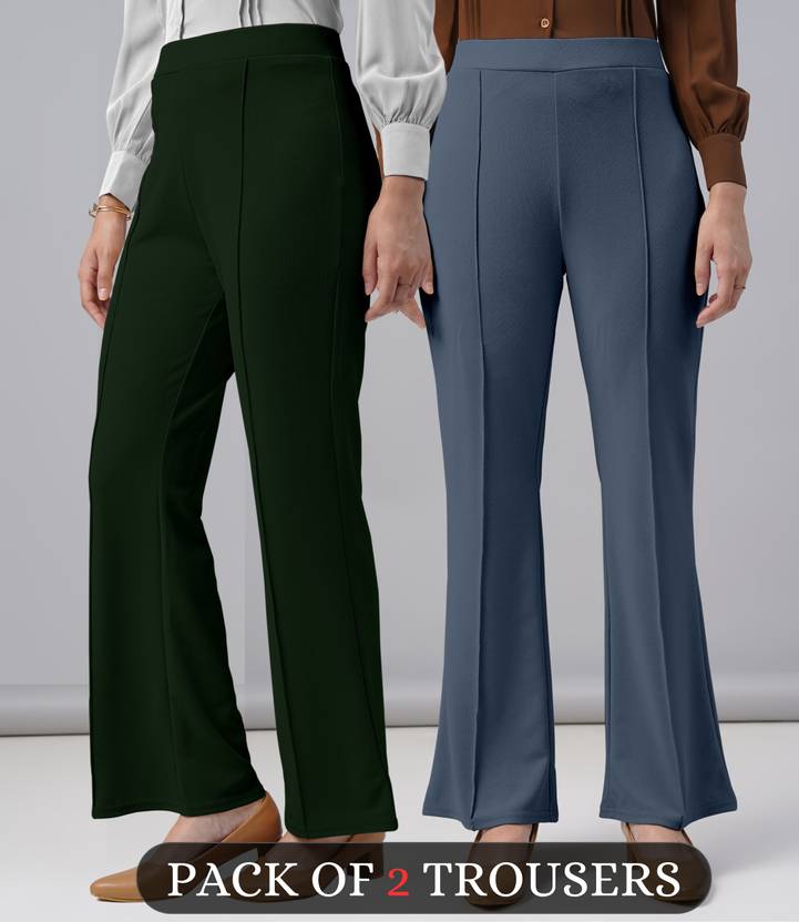 FUBACKĀ Pack of 2 Women Regular Fit Grey, Dark Green Lycra Blend Trousers