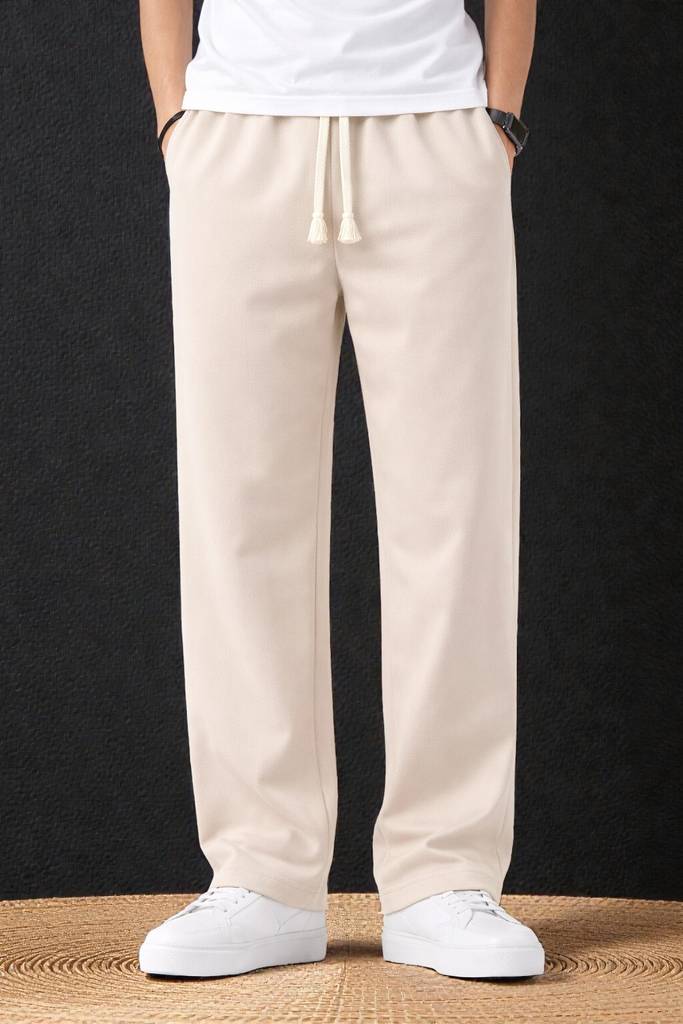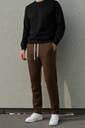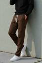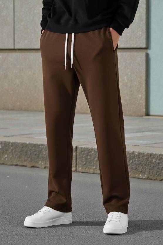 These men's brown track pants are designed for comfort and casual style. They feature a solid color, an adjustable drawstring waist for a secure fit, and practical side pockets. Made from a comfortable fabric, these track pants are ideal for everyday wear, lounging, or light activities. They can be easily paired with a variety of tops such as t-shirts, hoodies, or sweatshirts, and completed with sneakers for a relaxed, athletic-inspired look.