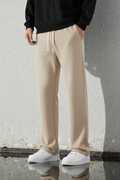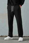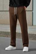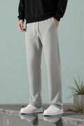 These comfortable grey track pants feature a white drawstring for an adjustable fit and convenient side pockets. Made for relaxed wear, they are perfect for lounging, casual outings, or light exercise. Pair them with a simple t-shirt, a cozy hoodie, or a casual jacket for a complete look. White sneakers, as shown, complement the style perfectly.