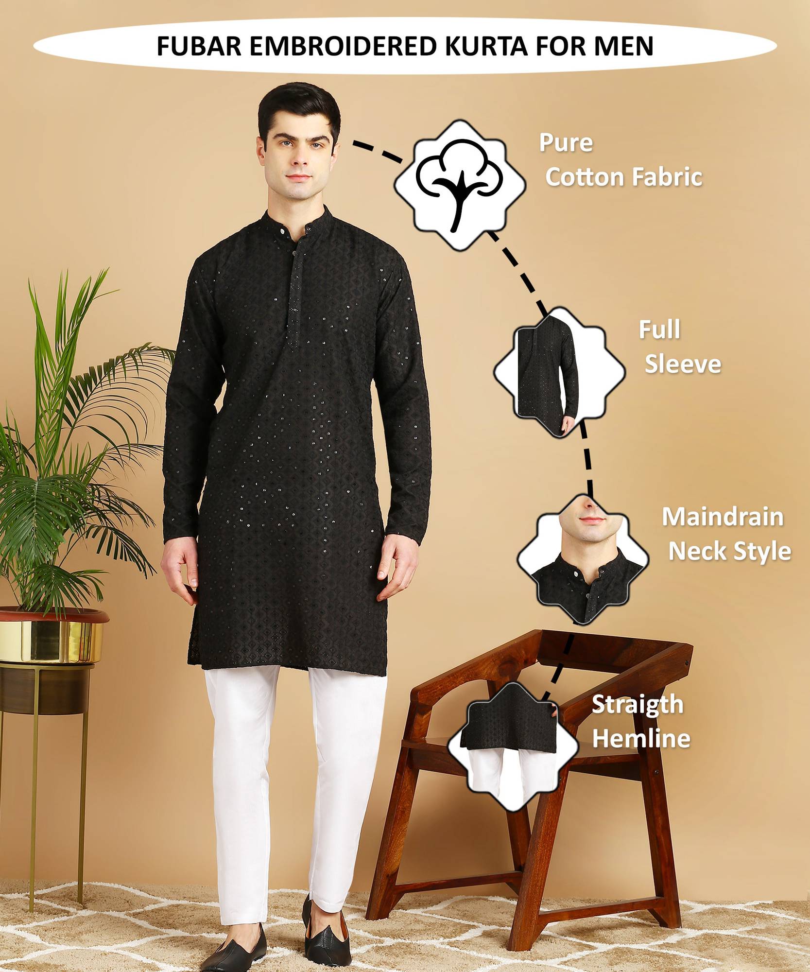 Immerse yourself in the celebration with our Festive Charm Kurta Pajama. Featuring intricate Chikankari and sequin work on Cotton Blend fabric, this set is perfect for your next engagement or wedding event. This dazzling pair of Kurta Pyjama adds a touch of elegance to your appearance, ensuring you stand out amidst the festive fervour.