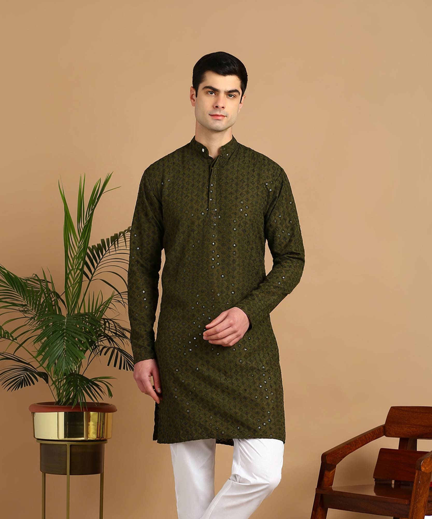 Immerse yourself in the celebration with our Festive Charm Kurta Pajama. Featuring intricate Chikankari and sequin work on Cotton Blend fabric, this set is perfect for your next engagement or wedding event. This dazzling pair of Kurta Pyjama adds a touch of elegance to your appearance, ensuring you stand out amidst the festive fervour.