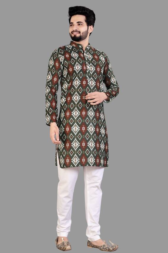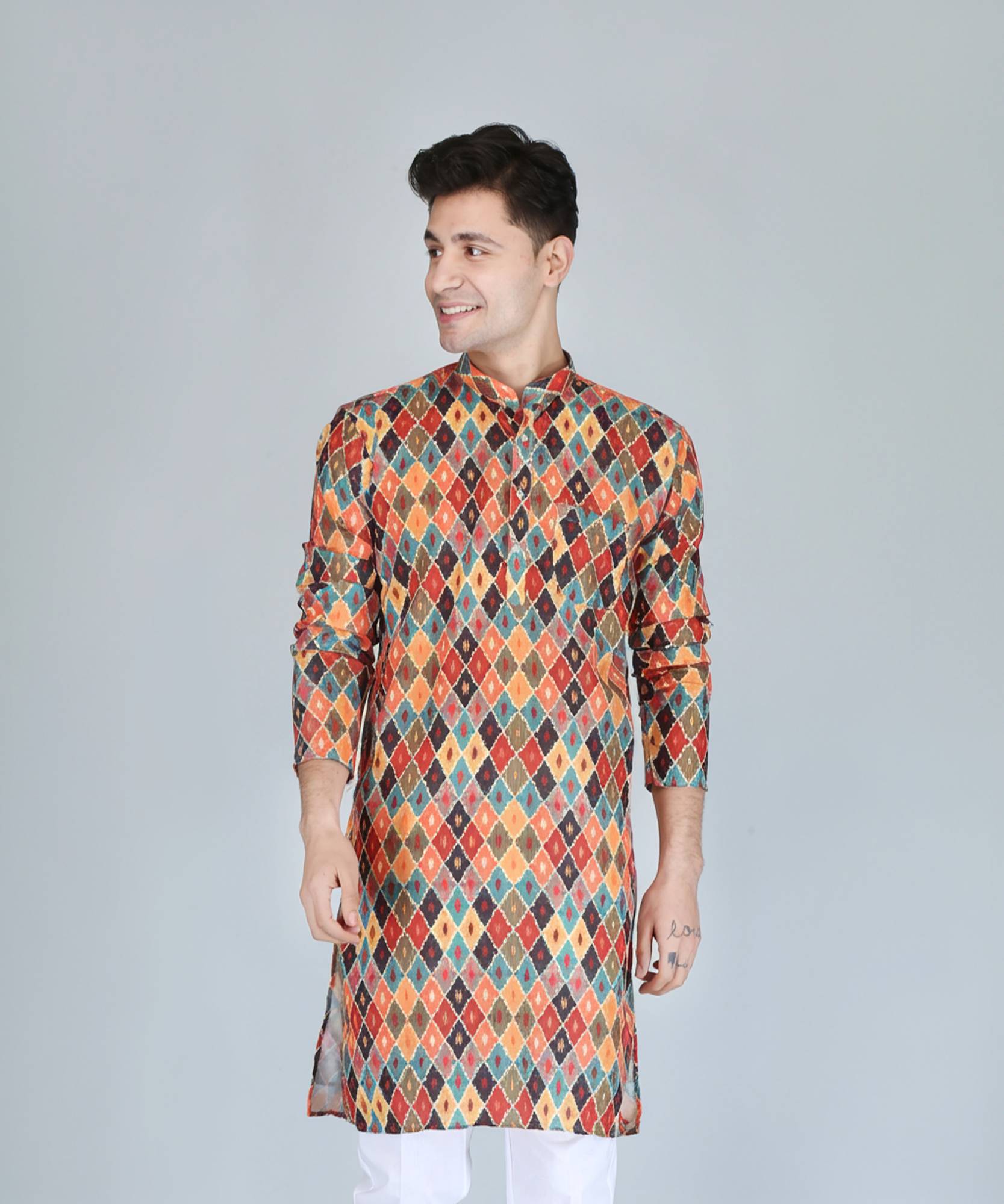FUBAR Men Printed Cotton Blend Straight Kurta  (Multicolor)
