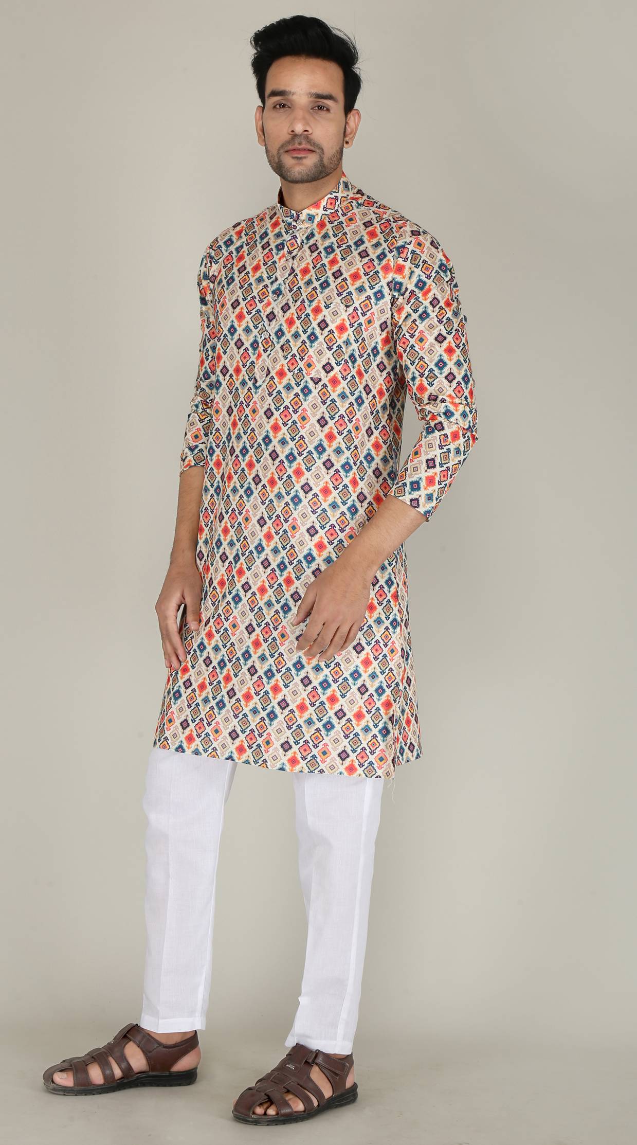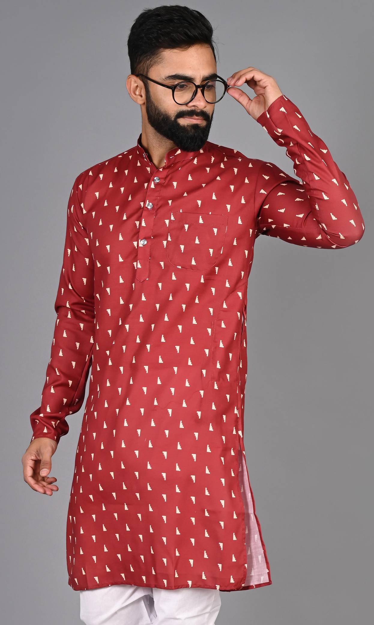 FUBAR Men Printed Straight Kurta (Maroon, White)