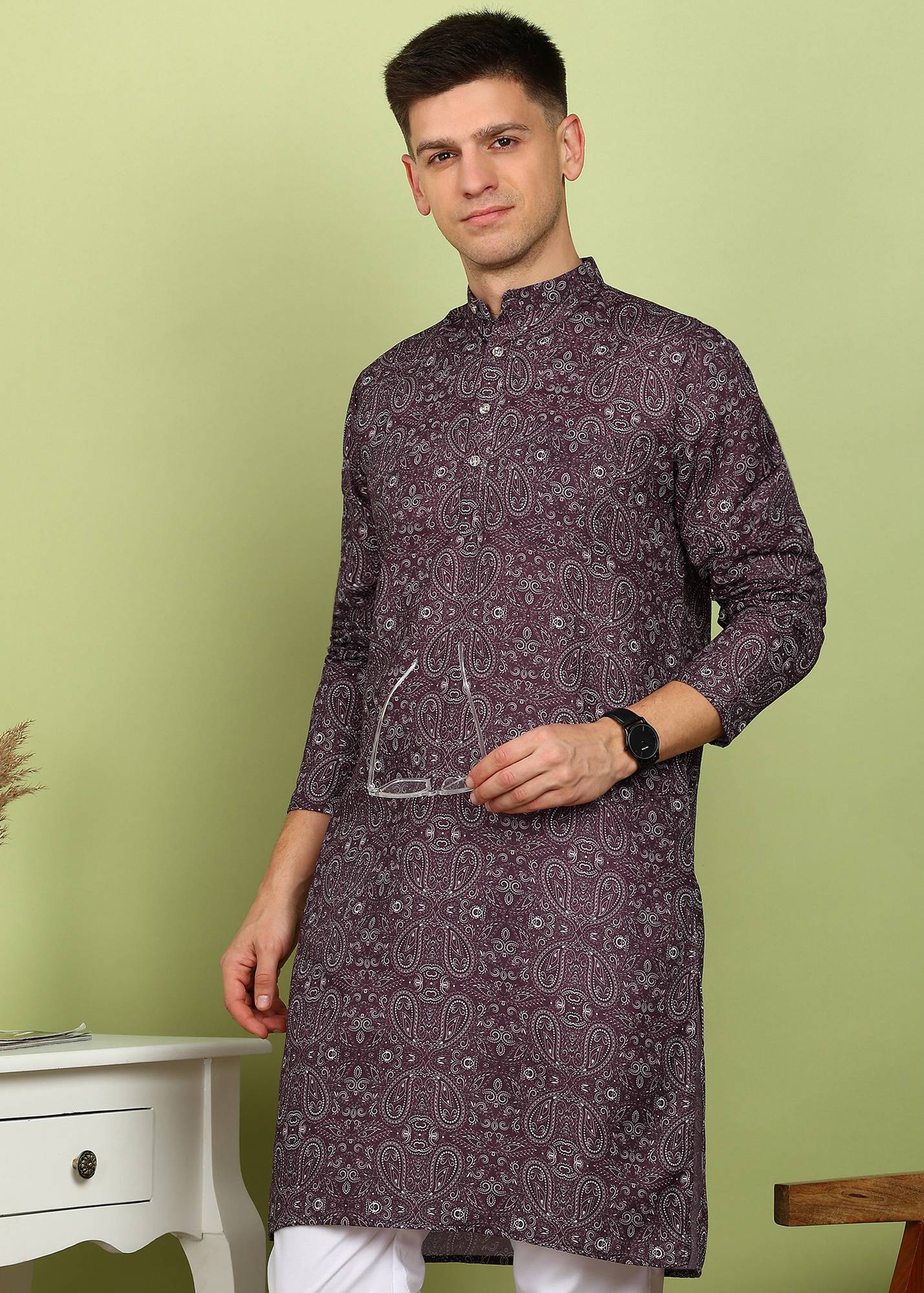 FUBAR Men Printed Straight Kurta (Purple)