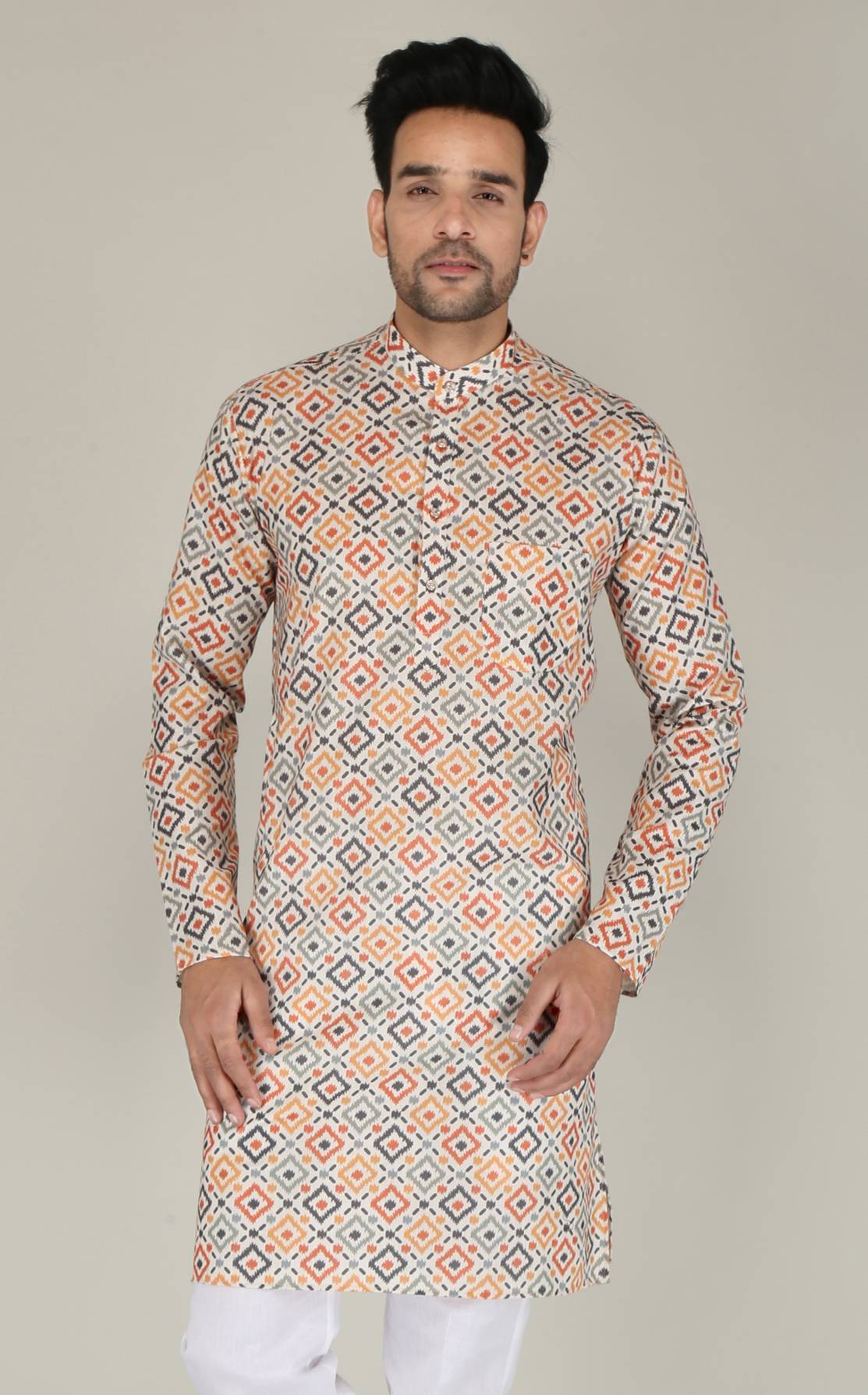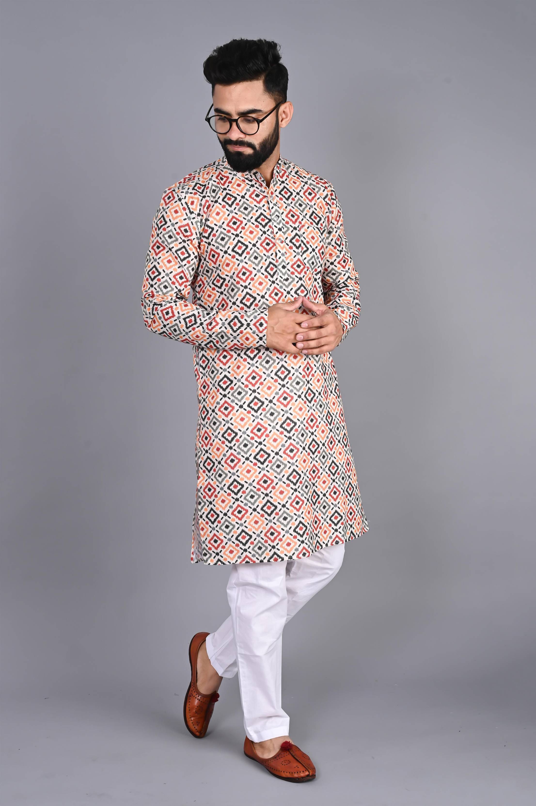 FUBAR Men Printed Straight Kurta (Orange)