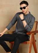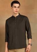 FUBAR Men Self Design Straight Kurta (Dark Green)