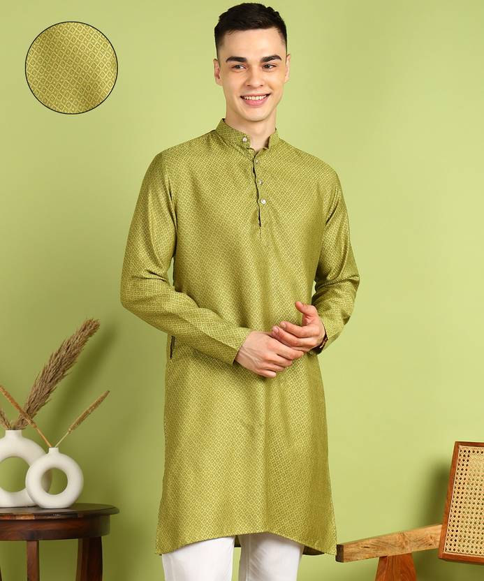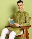 FUBAR Men Self Design Straight Kurta (Dark Green)