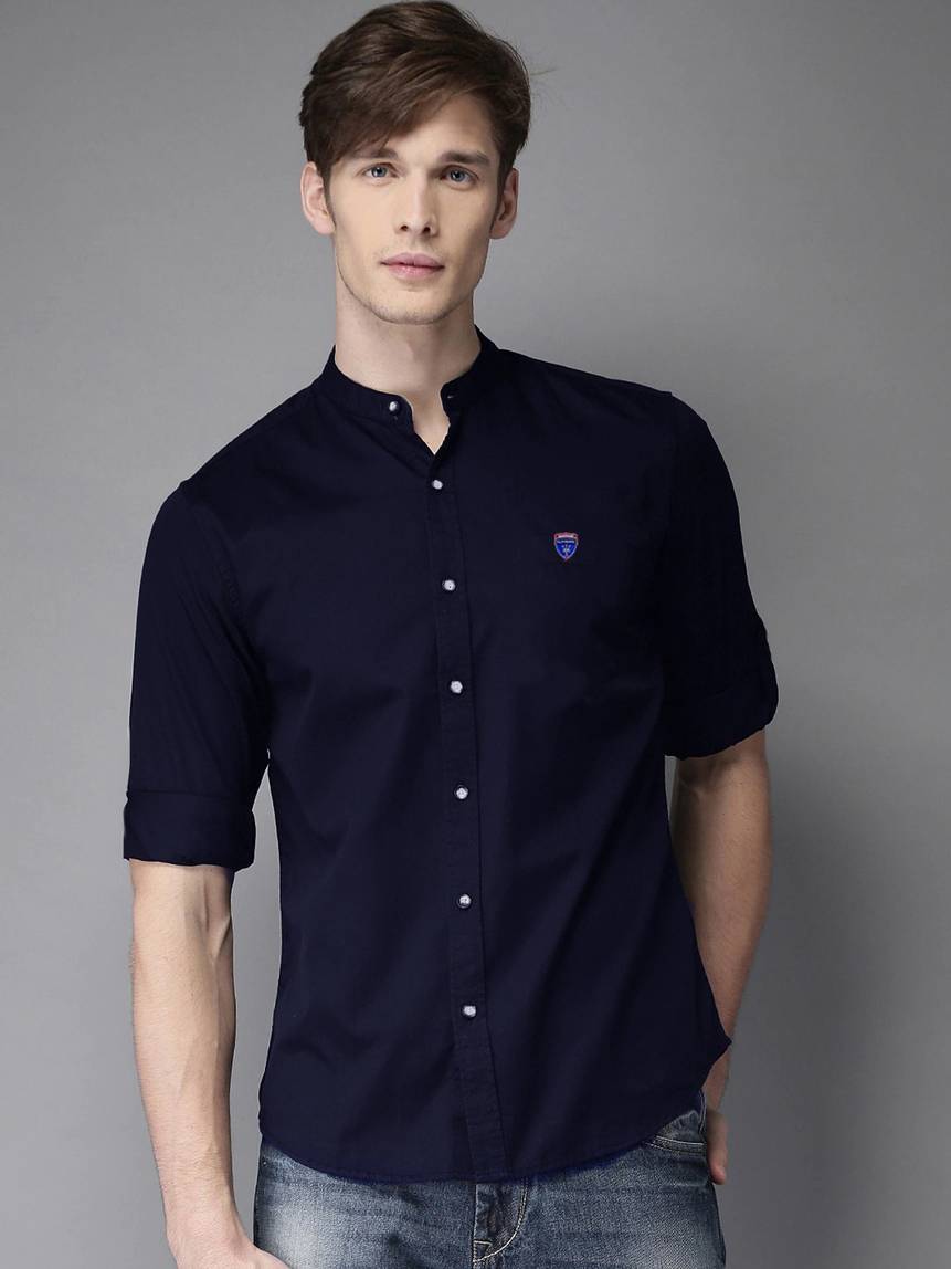 FUBAR Men Solid Casual Blue Shirt