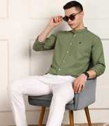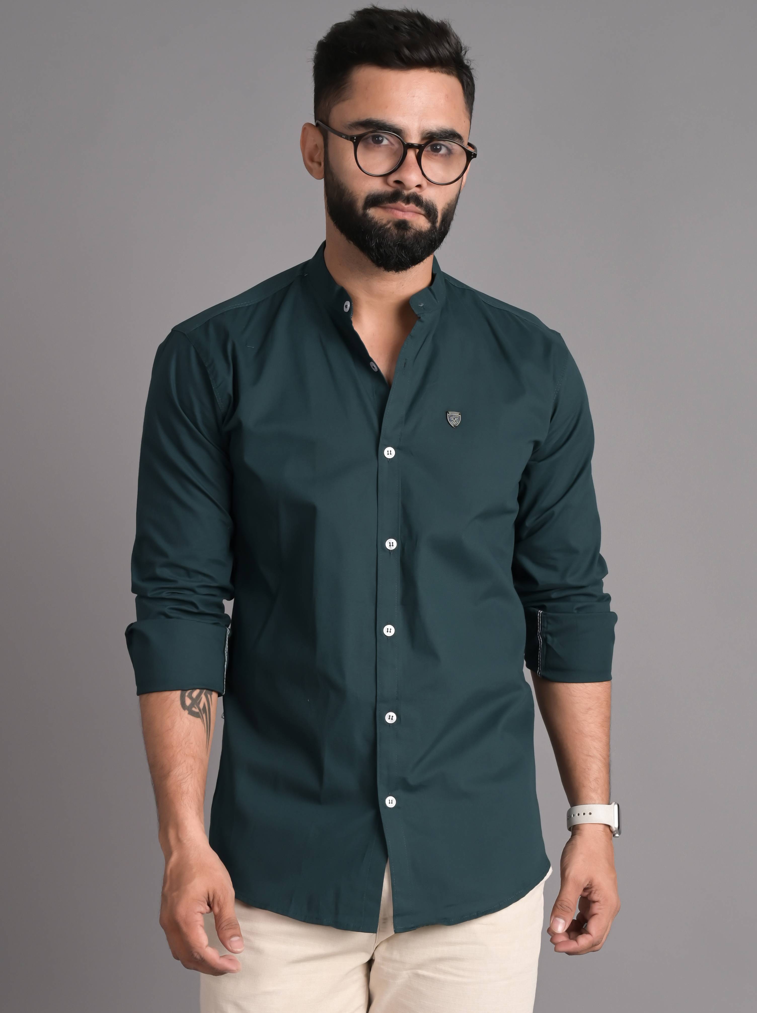 FUBAR Men Solid Casual Dark Green Shirt