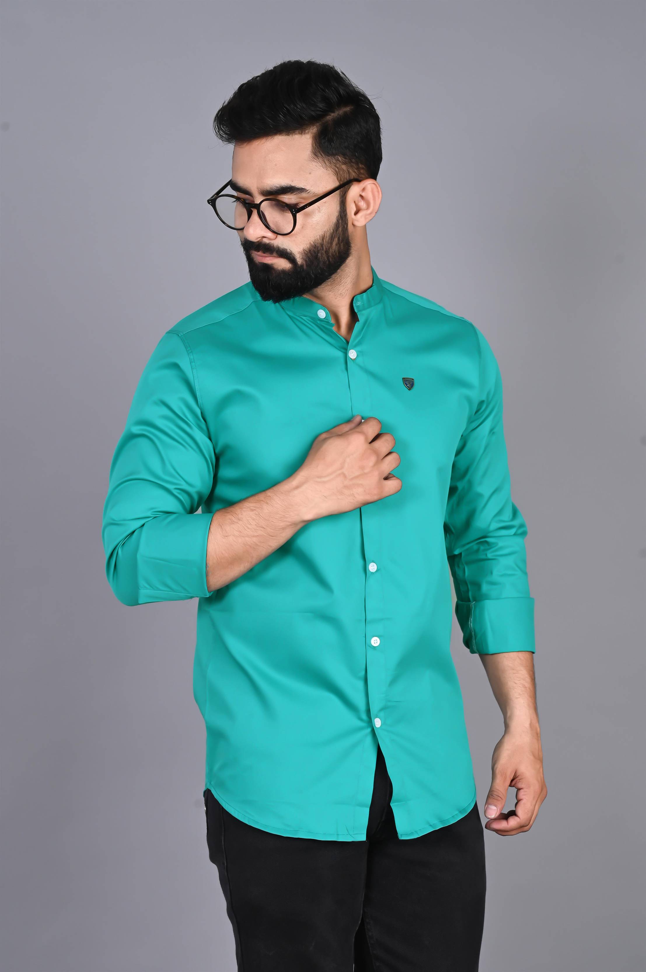This is a best Casual wear Shirt with Mandarin collar , long sleeves with button cuffs , full buttoned placket on the front, yoke on the back, Curved. Pair this along with a good pair of denim or chinos and loafers for a Sharp and Dapper look.