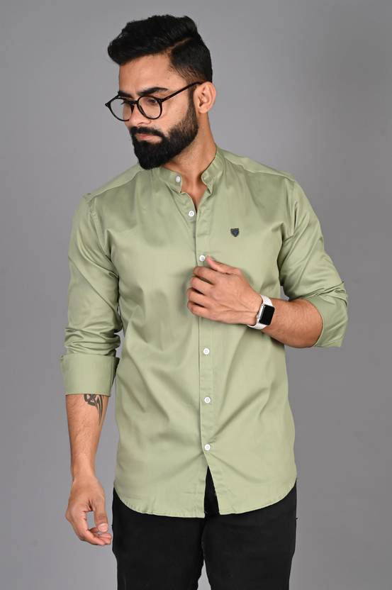 Men Regular Fit Solid Mandarin Collar Casual Shirt