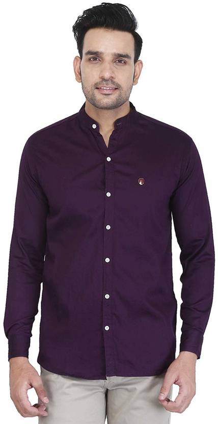 Men Slim Fit Solid Mandarin Collar Casual Shirt