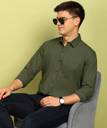 FUBAR Men Solid Formal Dark Green Shirt