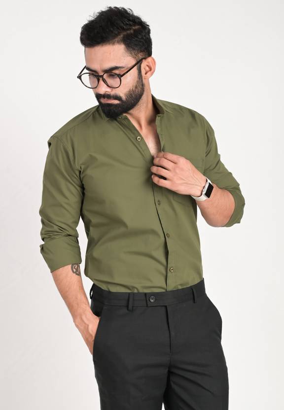 FUBAR Men Solid Formal Green Shirt
