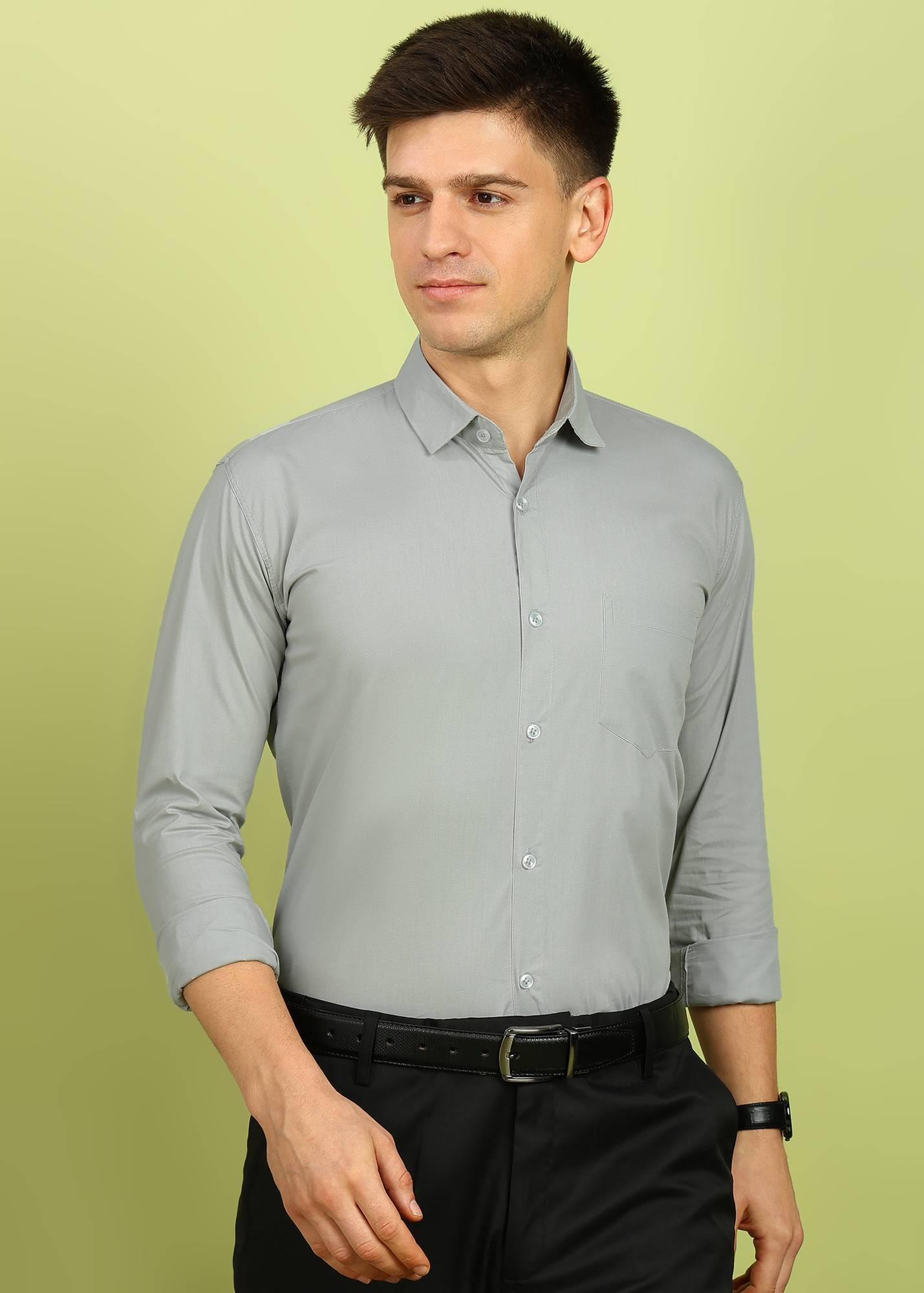 FUBAR Men Solid Formal Grey Shirt
