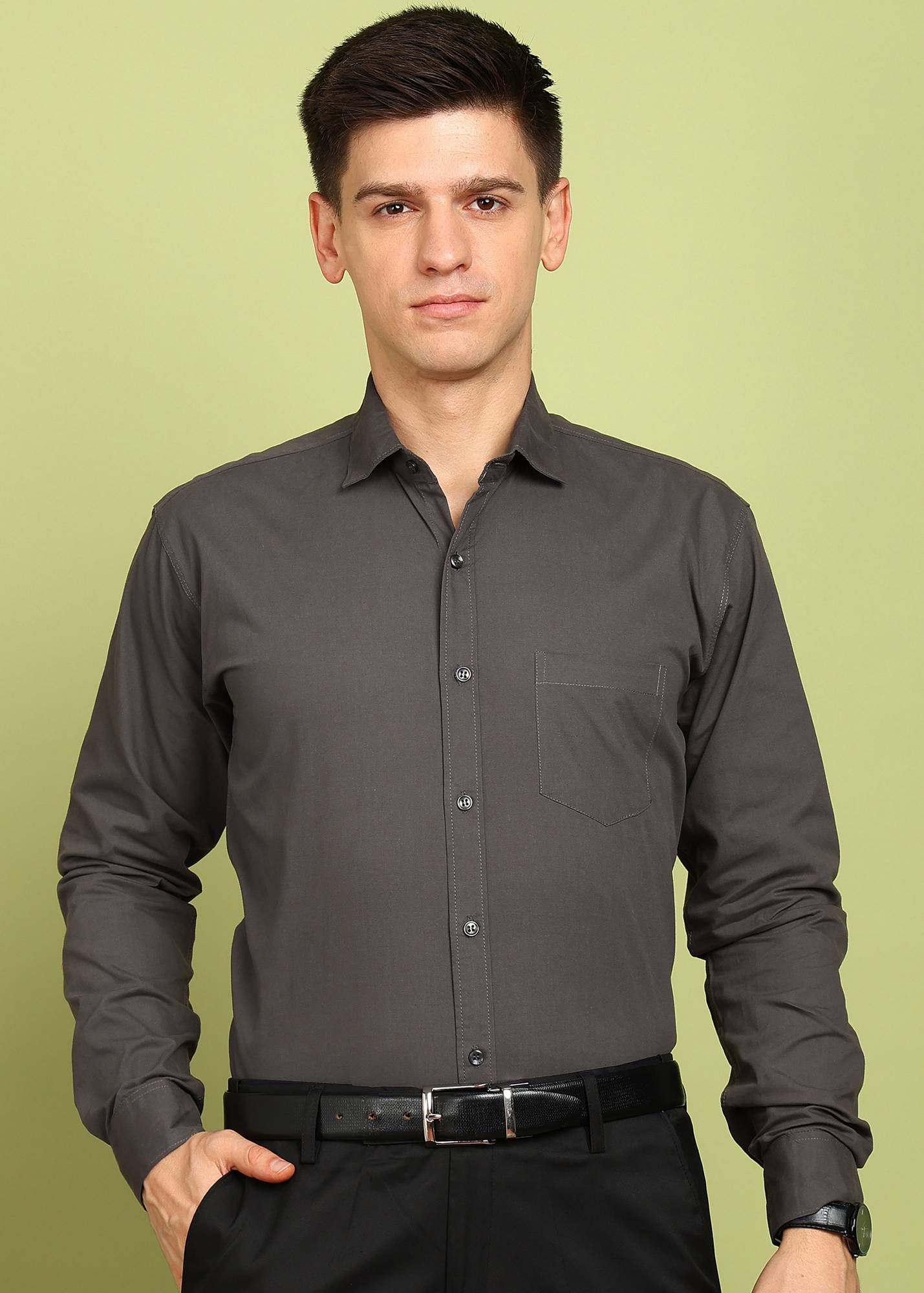 FUBAR Men Solid Formal Grey Shirt