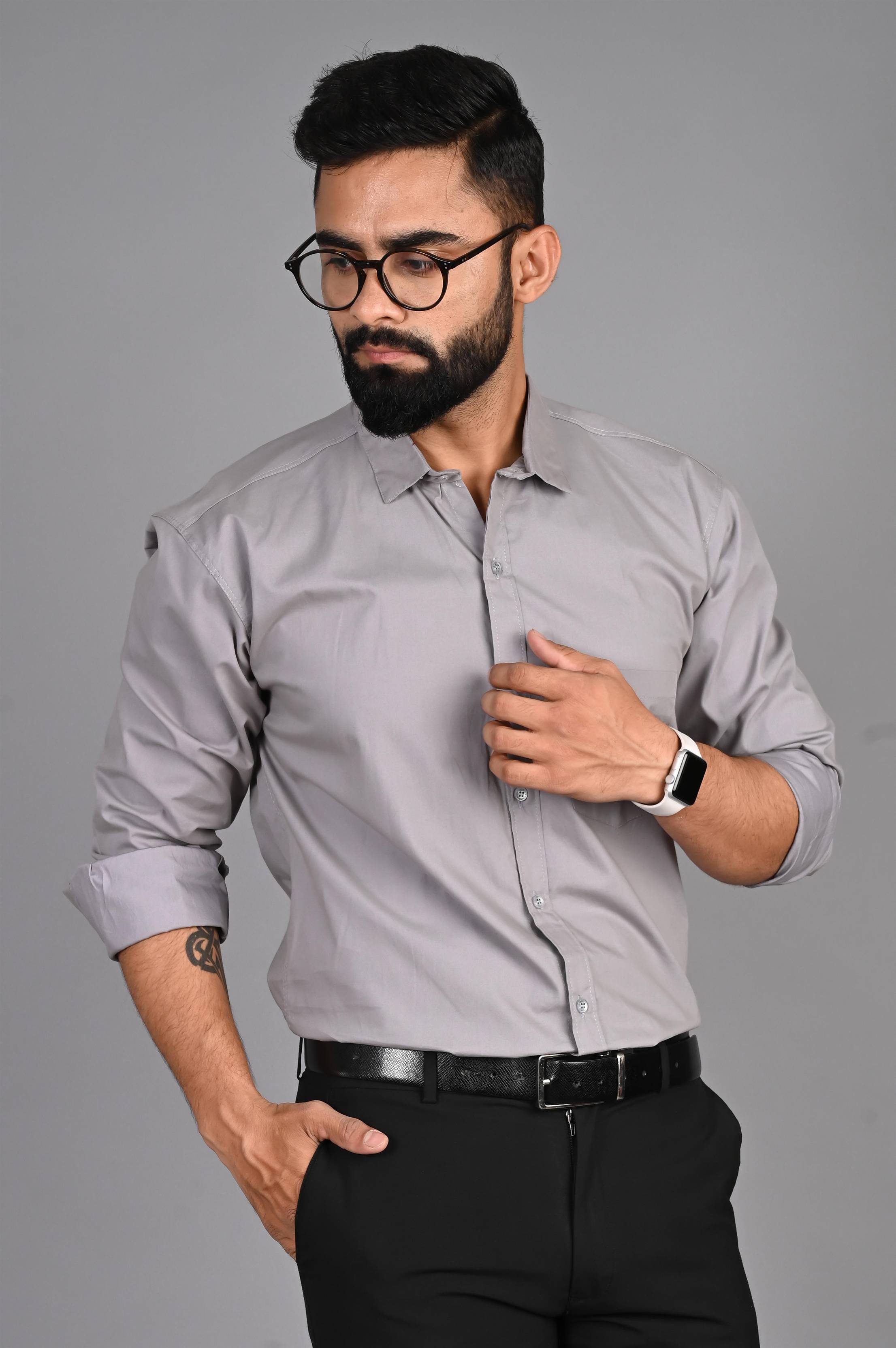 FUBAR Men Solid Formal Grey Shirt